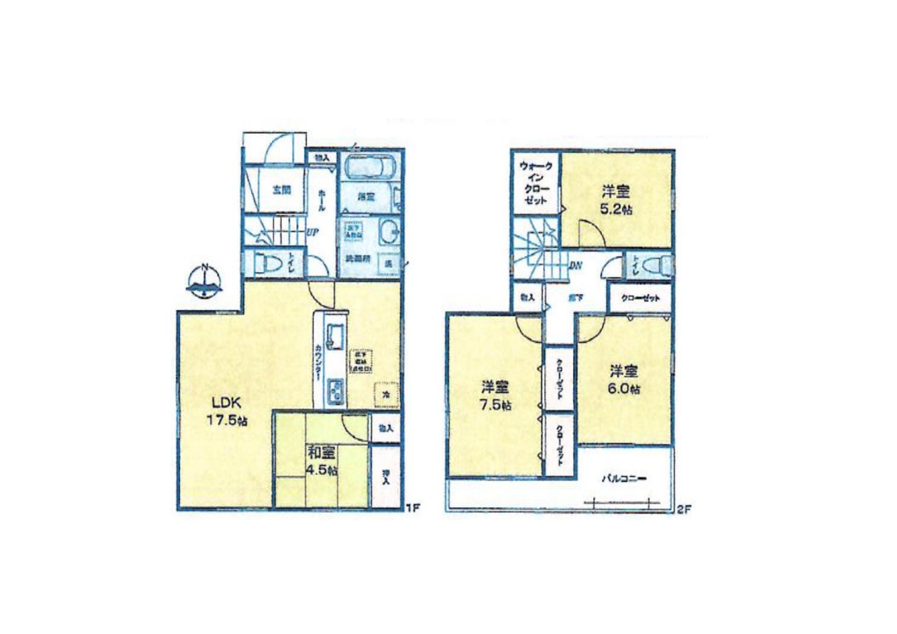 | 間取 | 4LDK~4LDK (和室4.5帖、LDK17.5帖、洋室5.2帖、洋室6帖、洋室7.5帖) | ||