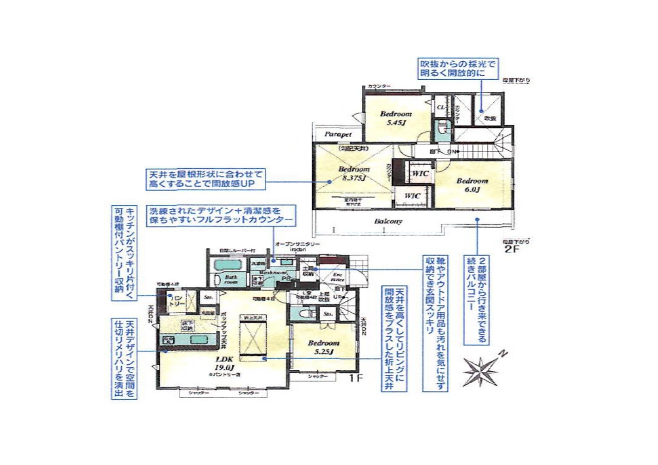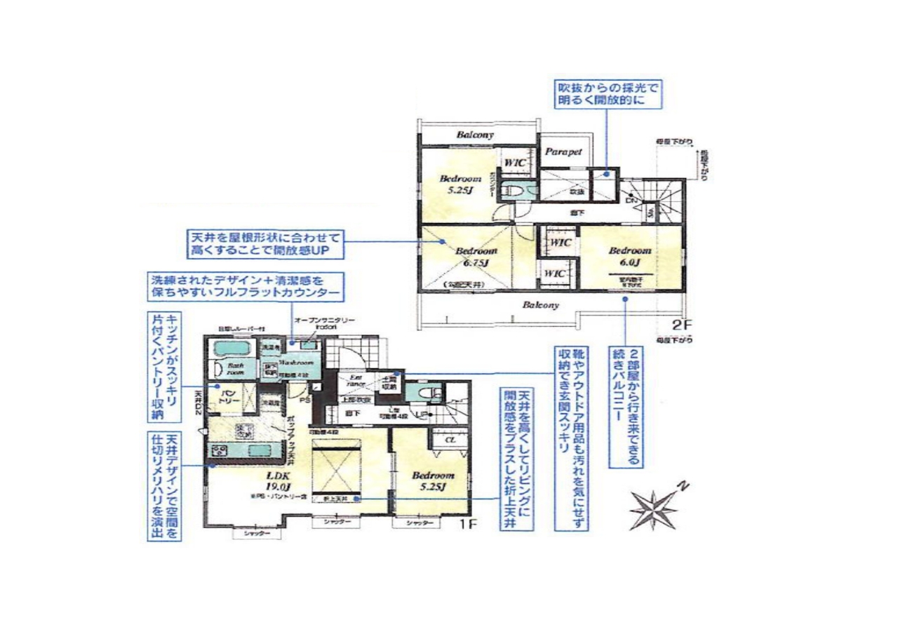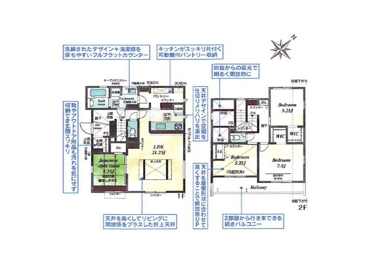 | 間取 | 4LDK~4LDK (和室3.95帖、LDK21.68帖、洋室5.25帖、洋室5.44帖、洋室5.25帖、洋室7.25帖) | ||