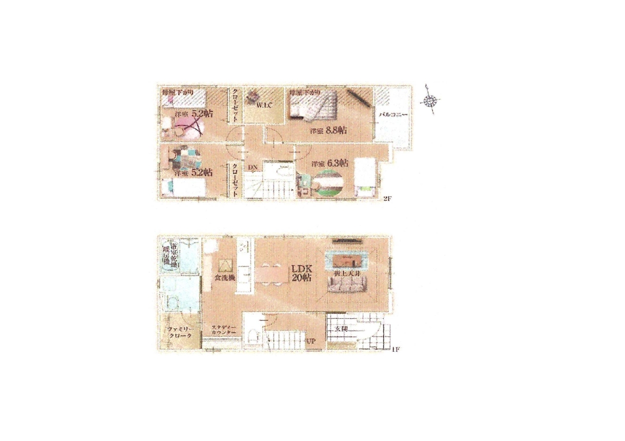 | 間取 | 4LDK (LDK20帖、洋室5.2帖、洋室5.2帖、洋室8.8帖、洋室6.3帖) | ||