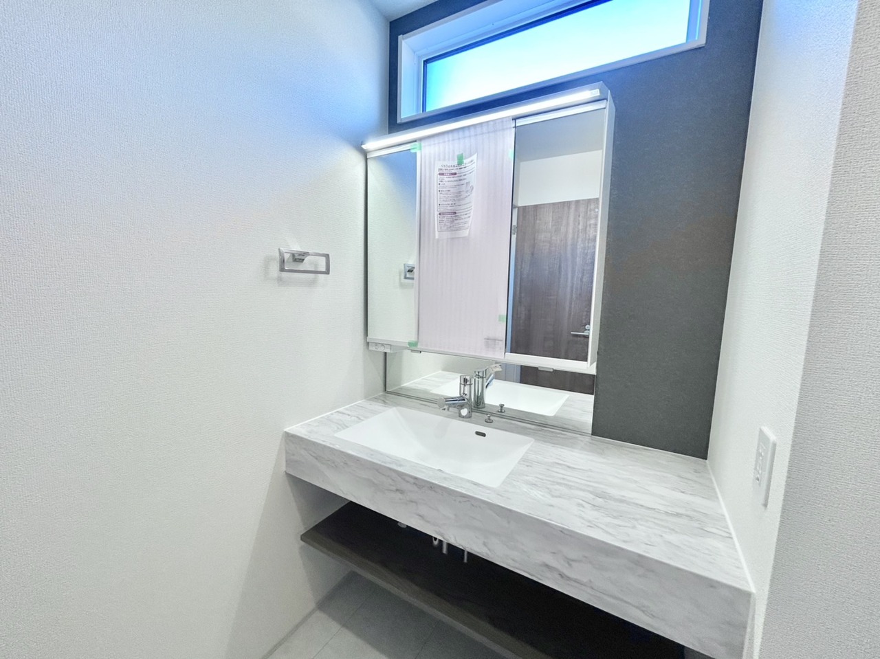 朝の準備に便利な広い洗面台 スタイリッシュなデザインですが沢山の収納も備えています