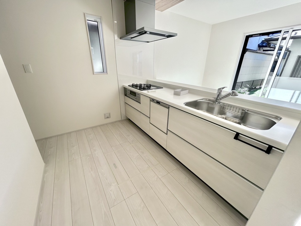 清潔感溢れるキッチン 大きなシンクで料理の腕もますます上がりそう