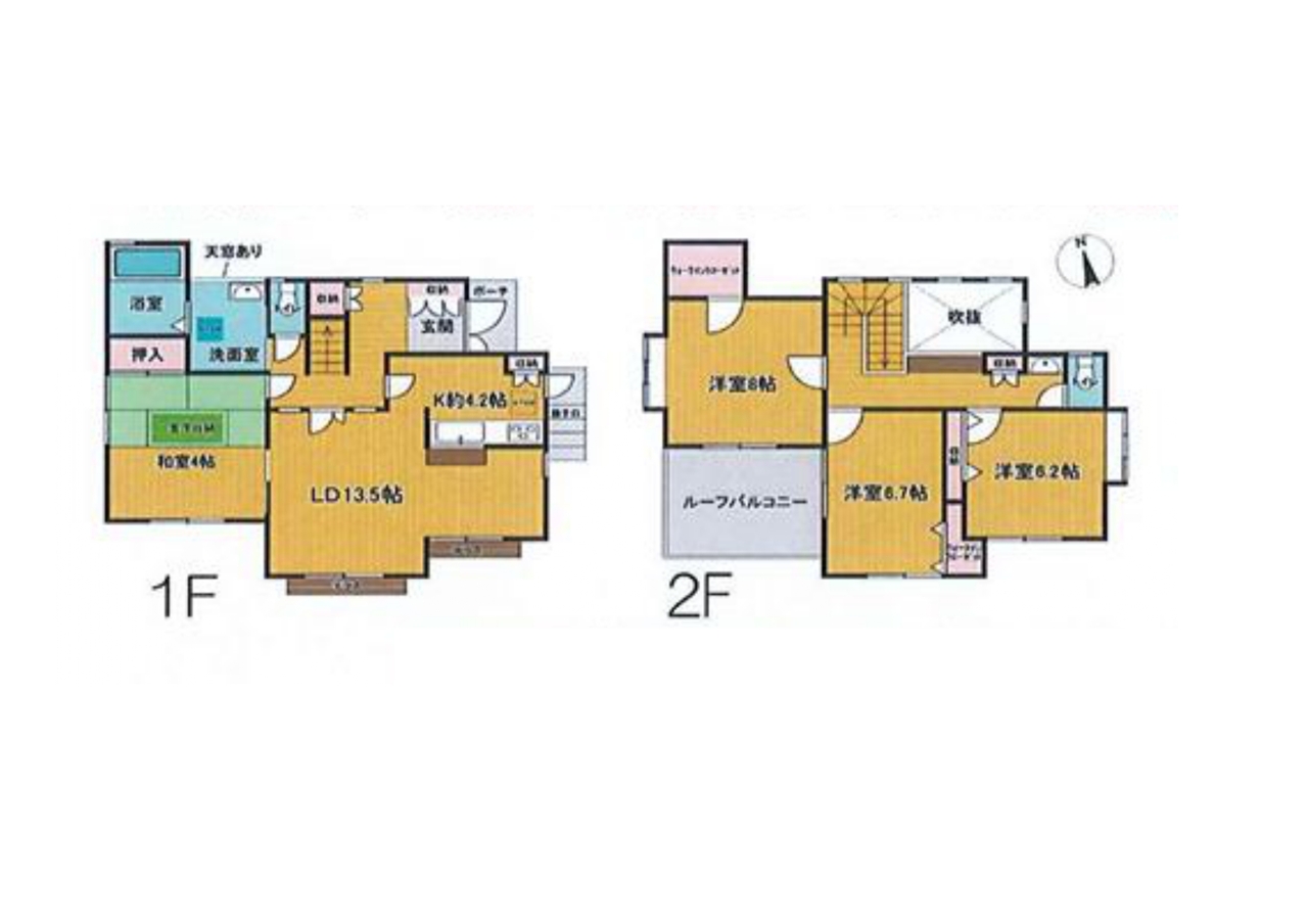 | 間取 | 4LDK (和室4帖、LDK13.5帖、洋室8帖、洋室6.7帖、洋室6.2帖) | ||