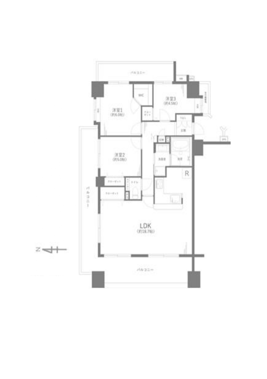 | 間取 | 3LDK (洋室4.5帖、洋室6.0帖、洋室5.0帖、LDK18.7帖) | ||