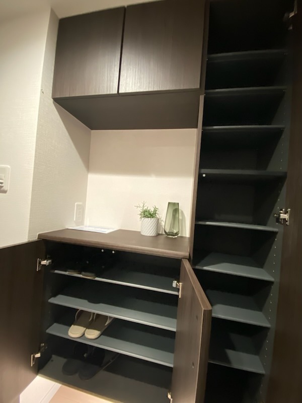 整然と並ぶ棚に家族全員の靴も片付く収納力たっぷりのシューズクローク。