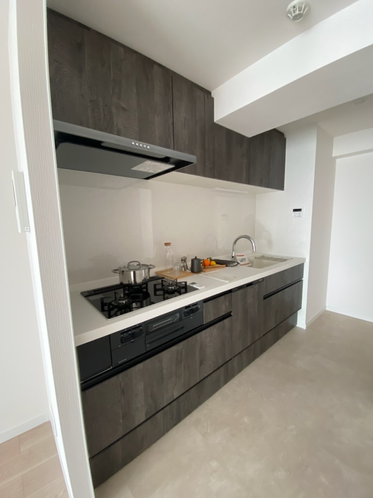 日々の家事にゆとりをもたらす落ち着いた色調のキッチン。