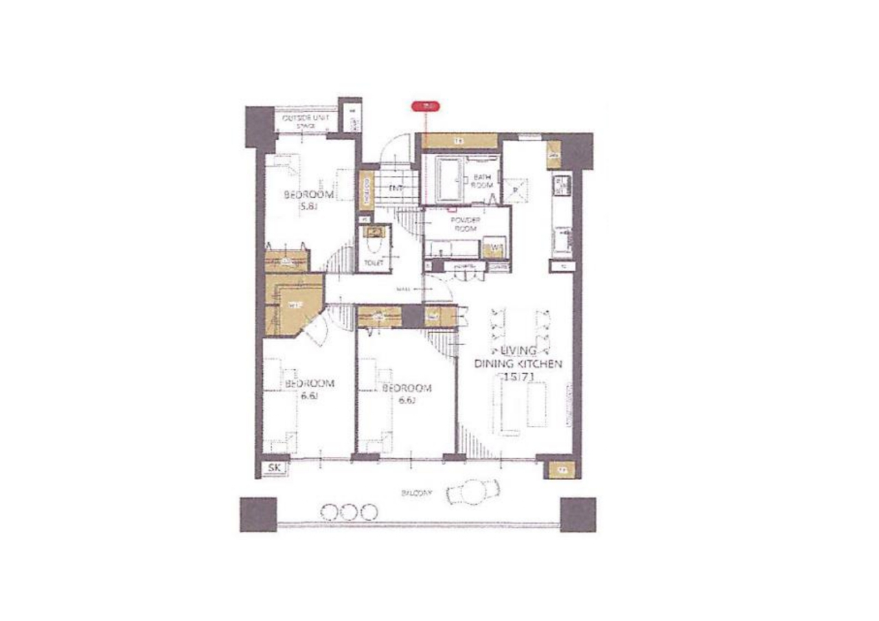 | 間取 | 3LDK (洋室5.8帖、洋室6.6帖、洋室6.6帖、LDK15.7帖) | ||