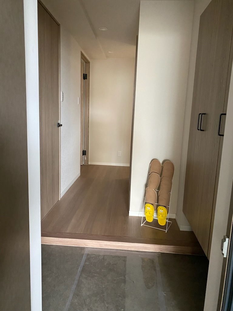 木の温もりを感じる落ち着いた色合いの空間は、日々の暮らしに安らぎをもたらしてくれます。一直線に伸びる廊下は、広がりを感じさせ、住まいの心地よいリズムを刻みます
