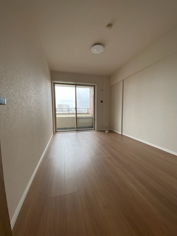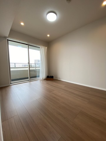 リビング横の洋室、床材の温かみと、バルコニー窓から広がる心地よい空間が、穏やかな日常を彩ります
