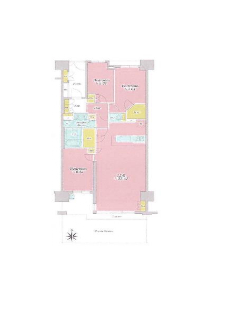 | 間取 | 3LDK (LDK22.4帖、洋室5.3帖、洋室7.0帖、洋室6.5帖) | ||